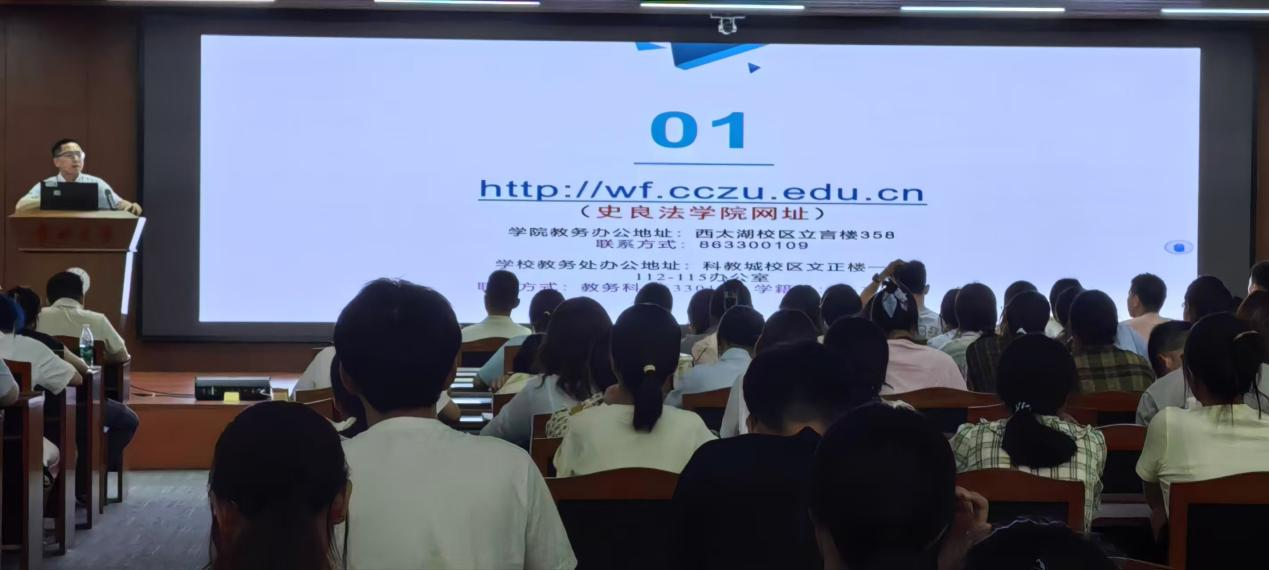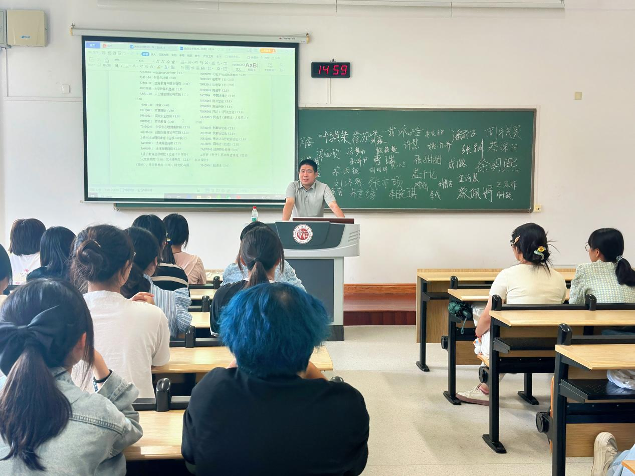 9月10日晚,史良法学院新生专业思想教育分享会顺利举行。本科教学副院长张顺为新生讲解了专业知识的学习方法,本科教务秘书赵东则详细介绍了学籍管理相关制度。两位老师现场解答了同学们在学习、生活及未来发展方面的疑问。此次活动旨在助力新生快速融入大学生活,明确未来方向,树立远大理想。