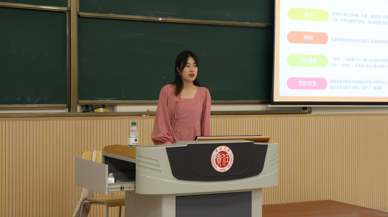 9月26日晚,史良法学院组织开展了“朋辈灯塔”引领教育活动。2025级硕士研究生陈颖结合自身经历,指出大学学习与高中存在显著差异,需构建知识体系,贵在持之以恒。针对加入部门、参与志愿活动等情况,她提醒要学会协调沟通,避免影响日常生活。通过系统的引导和针对性的辅导,帮助新生更快适应大学节奏,为未来的学术和职业发展奠定坚实的基础。
