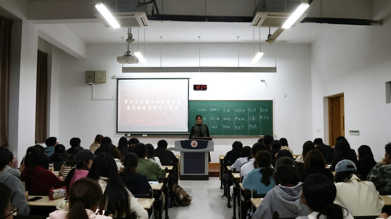 为了解学生诉求,培养同学们的民主意识,推动校园建设的发展。10月30日晚,常州大学史良法学院于立德楼115教室成功举办第十七届学生会委员会委员候选人推荐会议。23级至25级本科生共计98名学生代表参会。