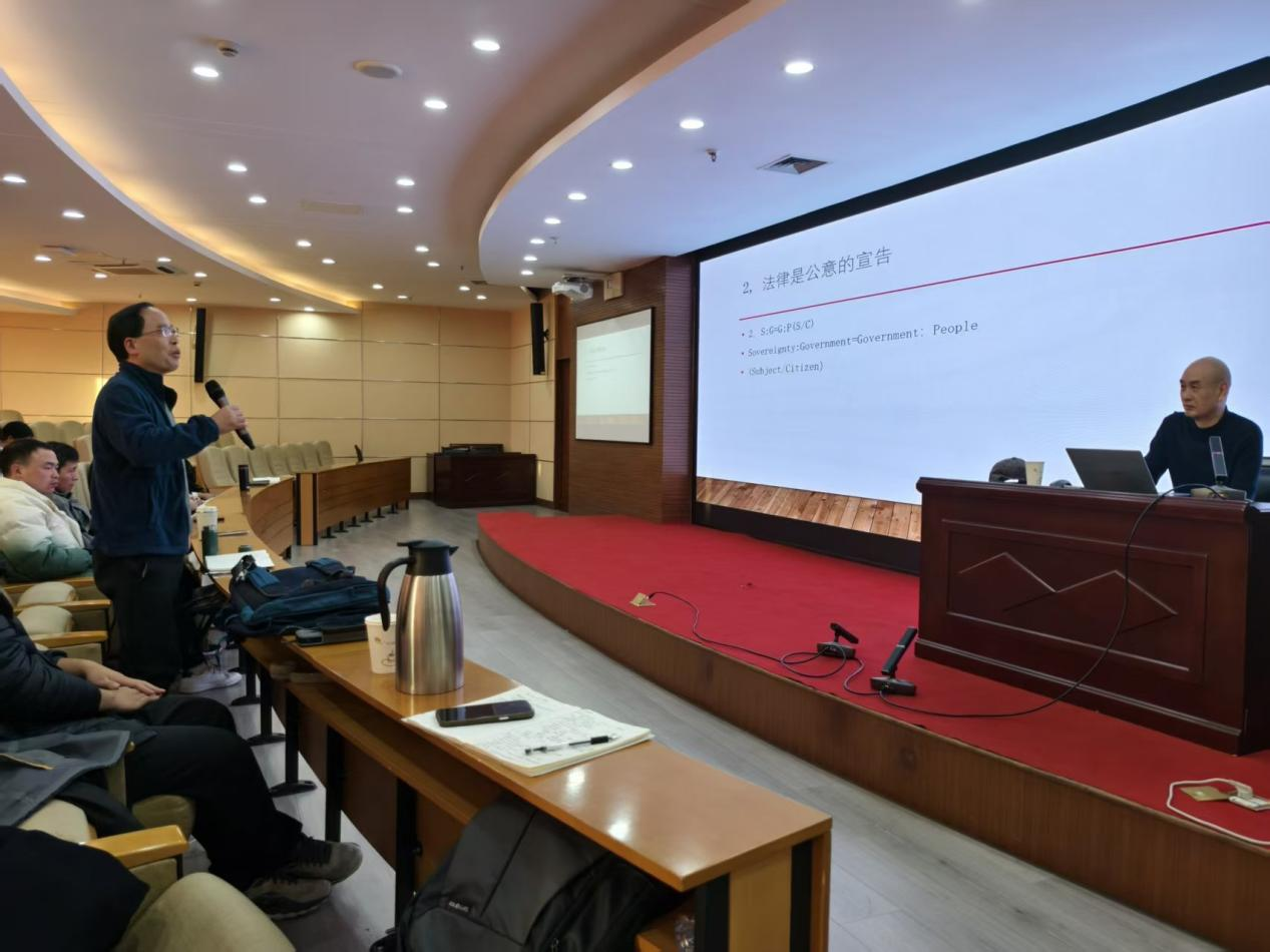 讲座尾声,在场师生就个人利益与集体利益的平衡、法律科学化的限度等问题踊跃提问,徐教授给予了细致深入的解答,现场学术气氛热烈。胡成老师对讲座进行了总结,他高度评价了徐教授以“公理-定理”框架统摄西方法律思想史的宏大叙事能力,以及其通过案例与图像化方式传达高深理念的教学艺术,并鼓励同学们将讲座中涉及的经典理论作为方法论,运用到部门法研究与论文写作中,提升研究的理论深度。