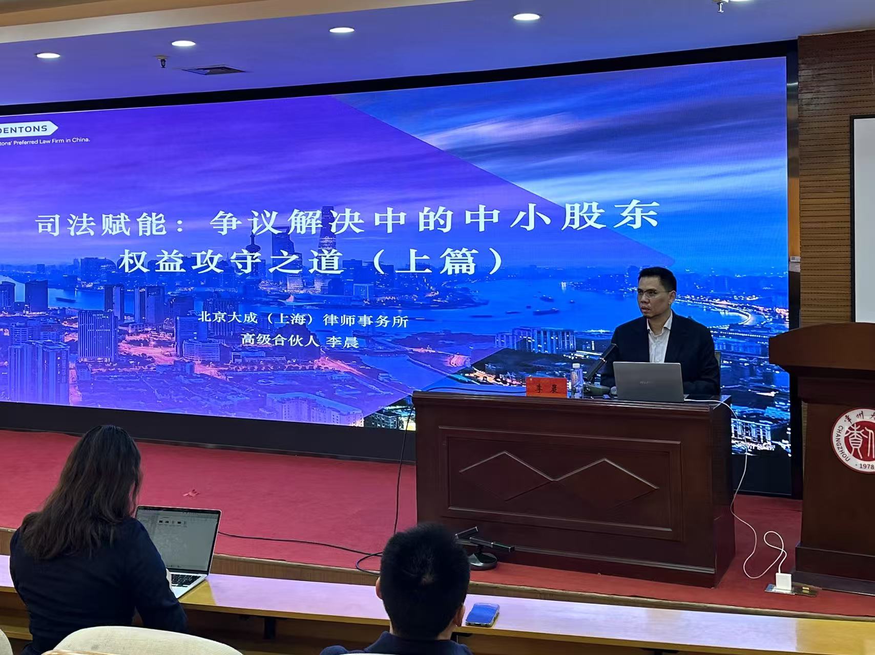11月29日下午,学院于科教城校区图书馆报告厅举办“司法赋能:争议解决中的中小股东权益攻守之道”主题讲座。本次讲座由北京大成(上海)律师事务所高级合伙人李晨律师主讲,院长张建主持,部分教师、研究生参加。