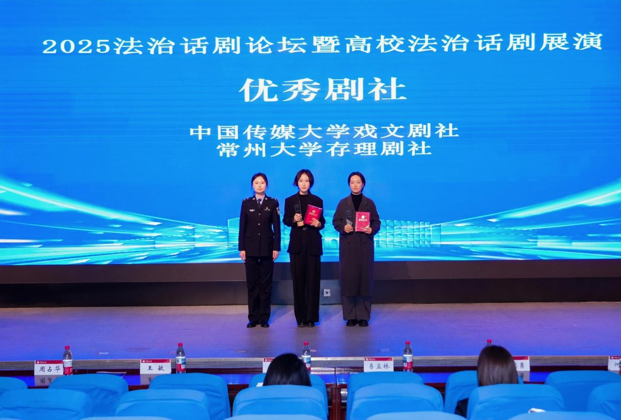 武进区人大党组成员宋文良,武进区人民法院党组书记、院长于立峰,武进区公安分局副局长苏建中,武进区人民法院党组成员、副院长许敏华等相关领导,常州市各区政法条线同仁、校友会代表、法学院师生代表观看了演出,协办方北京国联政信科技有限公司代表郭少堋等同志为剧社成员颁奖留念。
