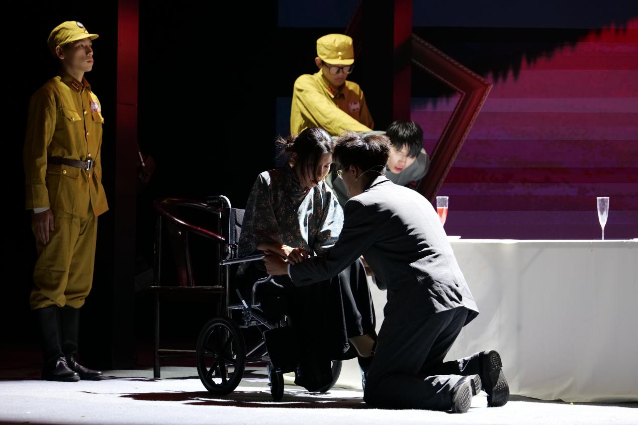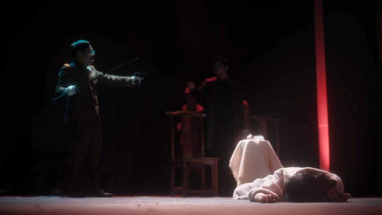 演出过程中,学生演员以饱满的精神状态和扎实的舞台表现力,生动再现了人物在信仰与背叛、压迫与抗争之间的心理博弈与价值抉择。通过灯光、音乐、布景等多元舞台手段的综合运用,剧组有效营造出高度紧张的审讯氛围和层层递进的心理场域。