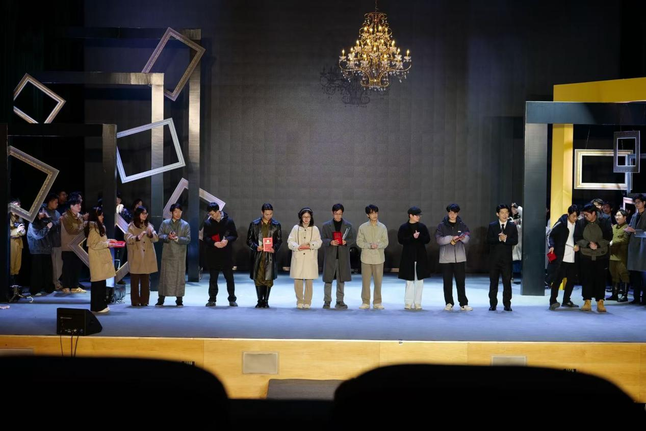 演出正式结束后,在全场热烈的掌声中,全体演员集体登台谢幕,向到场观众的关注与支持致以诚挚感谢。随后,存理剧社举行了简短而庄重的颁奖仪式,出品方代表、教师代表向在首届法治话剧论坛暨高校法治话剧展演活动中获得奖项的剧目负责人、剧组负责人转达了中国社会主义文艺学会法治话剧创作研究院颁发的奖项证明。