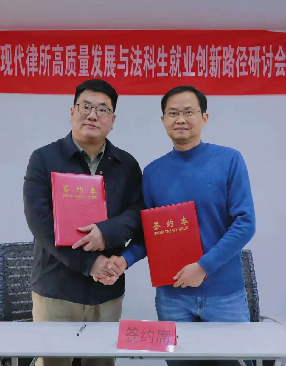 张建与北京继来(常州)律师事务所负责人胡雪平签署“共建就业实践基地”协议。