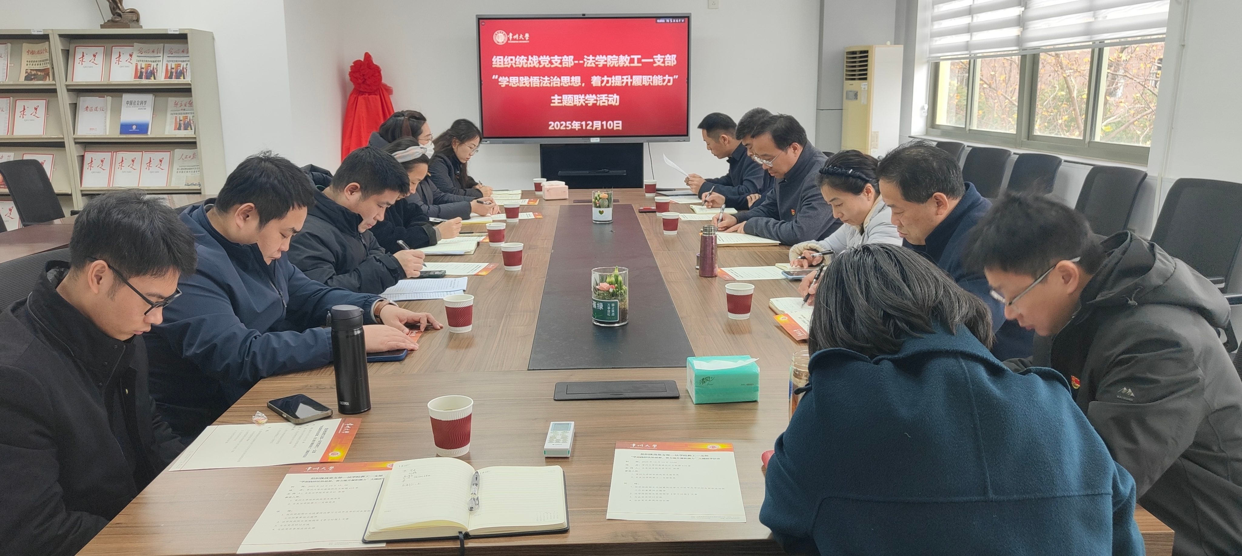 12月6日下午,组织部与史良法学院开展“学思践悟法治思想,着力提升履职能力”主题联学活动,集体学习习近平总书记对全面依法治国工作的重要指示精神和《习近平法治思想是全面依法治国的根本遵循和行动指南》文章并开展研讨交流。校党委常委,组织部部长、统战部部长秦义,史良法学院党委书记陈婷参加活动。