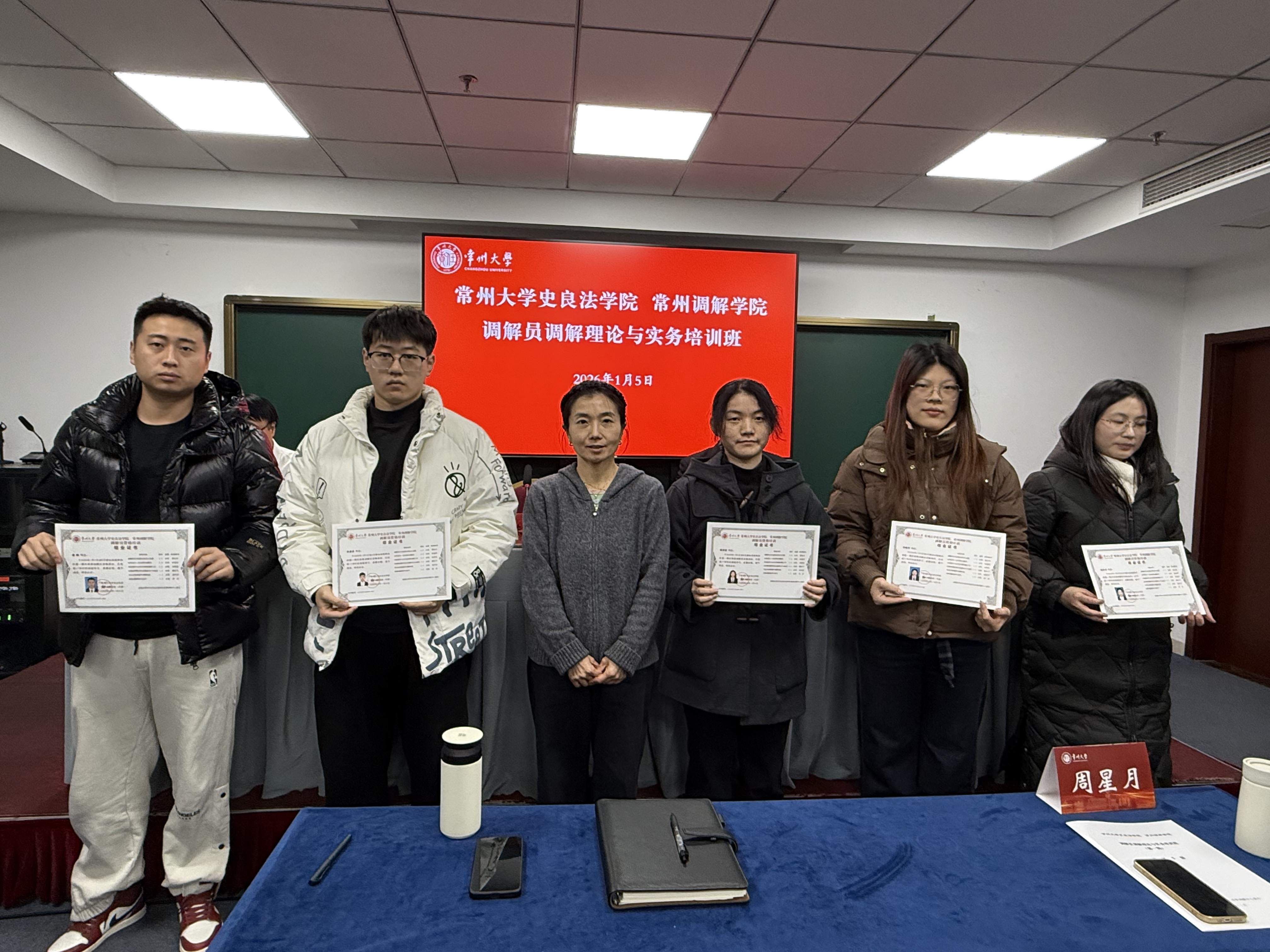 2026年1月5日至6日,常州大学史良法学院、常州调解学院举办第一期学生调解员调解理论与实务培训班。这是2025年8月常州调解学院挂牌以来,首次以常州调解学院的名义,实现了我院“本硕调解员”系统培训零的突破。是史良法学院落实“以实践为导向的法治人才培养”要求的先手棋。