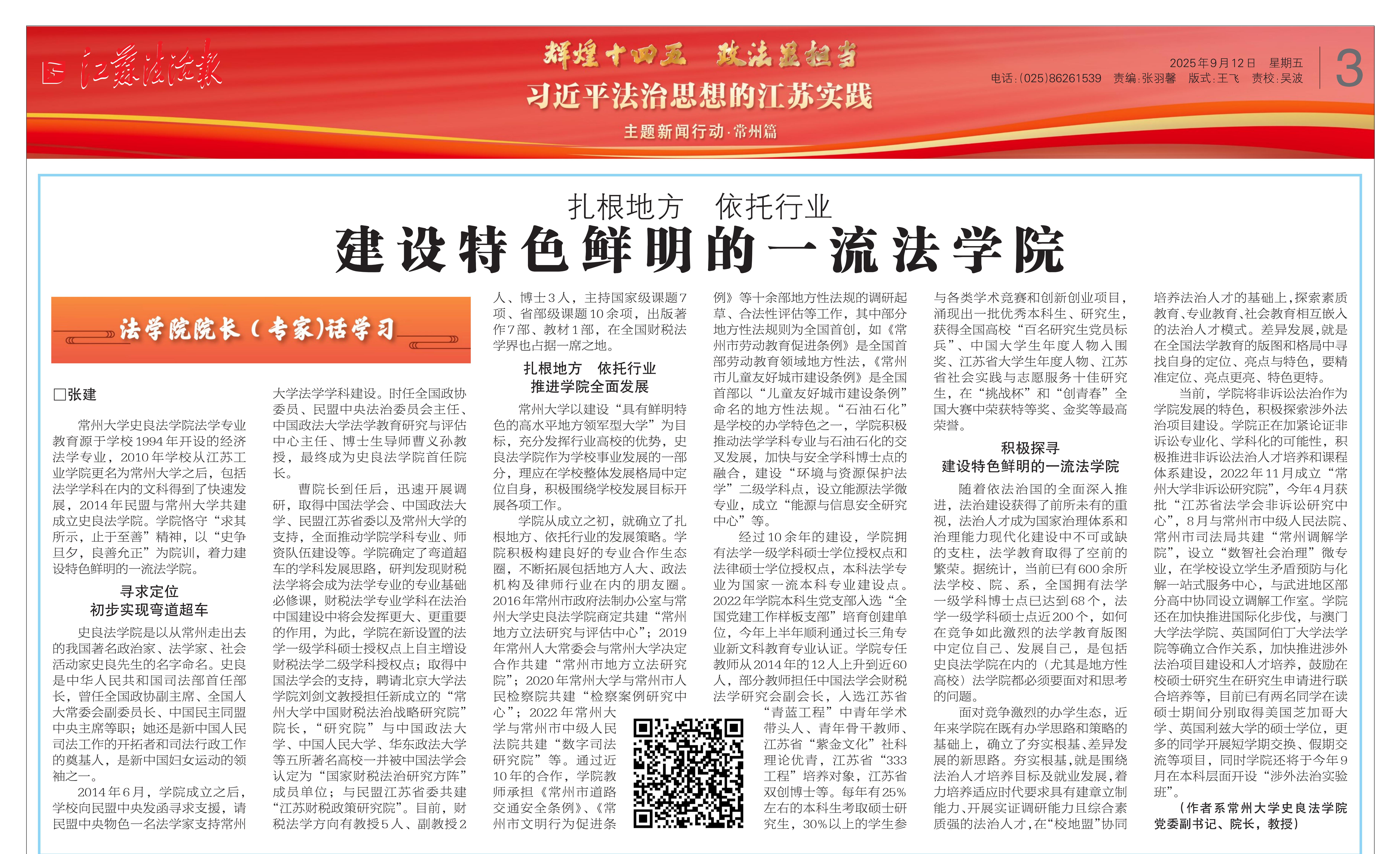 江苏法治报:扎根地方 依托行业 建设特色鲜明的一流法学院